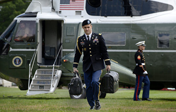 【新!唐!人:北京时间2017年11月13日讯】美国总统无论到哪里,都有军事随从替他提着一个黑色公事包,以备他在紧急情况下授权美军发动核武攻击。包括美国总统川普(特朗普)的访亚之行也不例外。据称,川普透过此公事包可将朝鲜瞬间夷为平地。