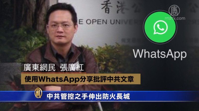 去年秋天,广东网民张广红使用美国即时通讯应用程序WhatsApp,和一群国内外的朋友分享一篇批评中共的文章。他因此在9月份被拘押。今年初遭到起诉。张广红的代理律师表示,指控张广红的证据,包括打印出来的他在WhatsApp群里分享的内容和发言。技术人员估计是张广红的手机被入侵,因为WhatsApp没有参与此事。