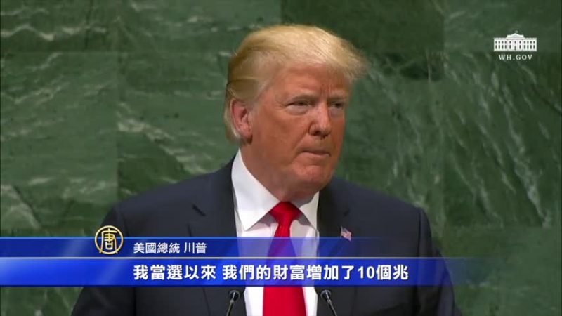 【新!唐!人:2018年09月26日讯】周二,川普在联合国大会发表演说。他表示,两年来美国及世界已发生很多变化。 “让美国再次伟大”的目标基于川普的“美国优先”理念,主权和独立是基石。而川普认为,全球一体化是对主权国家和自由民主的威胁。