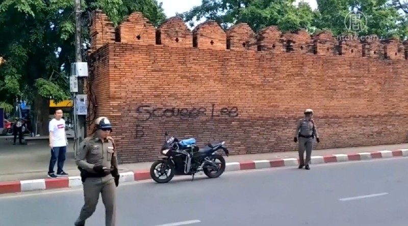 【新!唐!人:2018年10月19日讯】周四,两名外国游客在泰国清迈著名旅游景点的古城墙上涂鸦,涉嫌破坏考古遗迹,被泰国警方逮捕。如果罪名成立,两人将面临10年监禁和3万多美元罚款。