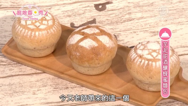 【新!唐!人:北京时间2018年11月28日讯】厨娘香Q秀(494):招财进宝宝-芋泥甜酒酿蜂蜜面包:荣获2018 KICC韩国国际厨艺术大赛现场团体料理烹饪挑战赛/个人艺术面包组/个人欧洲面包组三大金牌奖的张晏瑜,从小看着父亲从事烘焙业,因此不断研发创新口味产品时,回忆变成喜悦的面包或甜点。双手连心制作健康及美味取向的招财进宝宝/芋泥甜酒酿蜂蜜面包/蝶豆花饮品,期盼所有人都能一起品尝这份幸福!