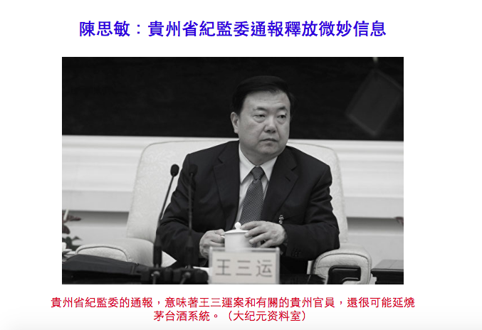 总之从贵州省纪监委的这个通报来看,王三运即便离开17年之久,贵州官场仍在继续调查与他有关的人,会不会是深陷被查传闻的茅台原一把手袁仁国,值得观察。但如当地坊间所言,袁仁国去年毫无预警被“裸退”,就已经让茅台系统以外诸多领域的人寝食难安。