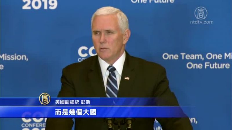 美国之音有篇报导,文章题目这么说的:彭斯,中共政权无视国际规范,我们已经警告过它。这是彭斯,应该是星期三,在美国国务院举办了驻外使节会议上发表演讲,多次提到中共。中共政权利用债务外交,和不公平贸易来扩大它的影响力,在南中国海的行为咄咄逼人,美国绝不会听之任之。所以这是应该继他在10月4日,应该是在10月4日,在10月4日发表他的对中共的檄文之后,震惊海内外的檄文之后,再一次在公开场合。因为他是在国务院的外交使节的会议上,那等于是在讲给全世界听,在讲给全世界听,有道理相信中共的,中共的外交使节也应该在现场。