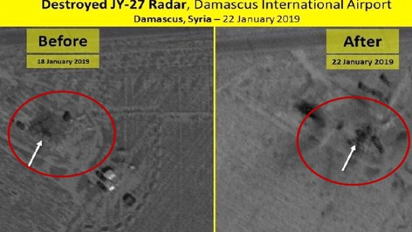以色列空军近期成功空袭叙利亚军队在大马士革国际机场部署的雷达基地。当地时间1月22日,以色列军方公布的最新卫星照显示,一部被标注为JY-27的雷达基地被炸毁。