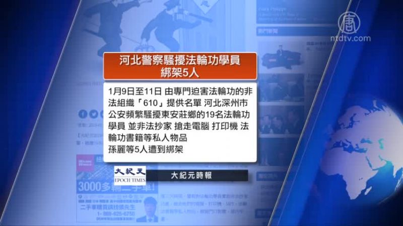 1月9日至11日,由专门迫害法轮功的非法组织“610”提供名单﹐河北深州市公安频繁骚扰东安庄乡的19名法轮功学员,并非法抄家﹐抢走电脑、打印机、法轮功书籍等私人物品,孙丽等5人遭到绑架。