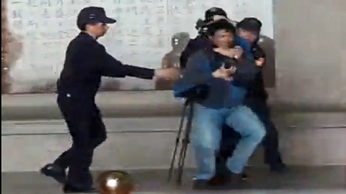 【新!唐!人:2019年02月27日讯】台北市中正纪念堂27日中午在进行仪队交接仪式后,遭一名男子朝蒋介石铜像丢掷稀饭,导致现场参观民众一阵惊慌,男子经驻卫警和辖区巡逻警方立即制止、带回。警方初步了解,值此二二八前夕,犯案动机为政治因素。