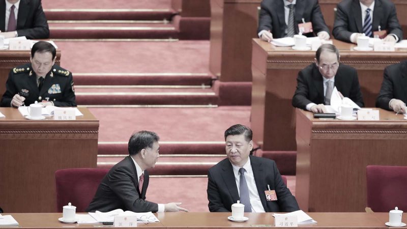 5日的人大会议上,王岐山曾与副总理刘鹤侧身交谈。但交流最多的是汪洋与习*近*平。在会议开了一个半小时后,汪洋侧身与习*近*平交谈了3分钟,约1分钟后又再次与习交谈,直到服务员斟水才停下。