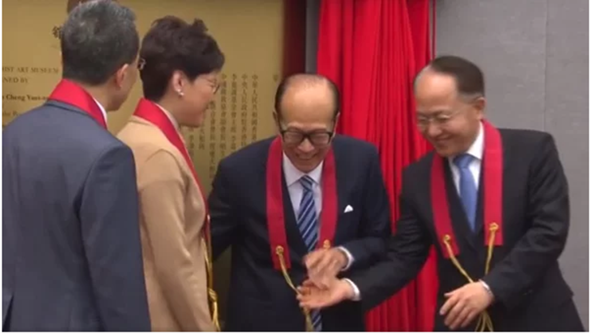 《苹果日报》报导,香港首富李嘉诚捐资17亿港元兴建的慈山寺28日举行开光典礼,政商界名人云集,北京驻港代表、中联办主任王志民及特首林郑月娥也出席了剪彩。