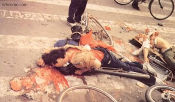 “学生们手挽着手,但是遭到了士兵的扫杀。装甲车多次碾过学生的身体,如同做‘饼’一般,残骸则被推土机卷走了。尸体此后被焚化,(骨灰)从下水道被冲走。”