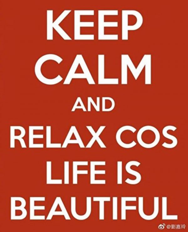 当天下午,刘嘉玲在微博贴出写有“KEEP CALM AND RELAX COS LIFE IS BEAUTIFUL”的图片,呼吁网民保持冷静。