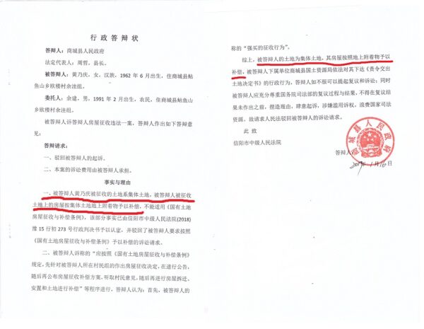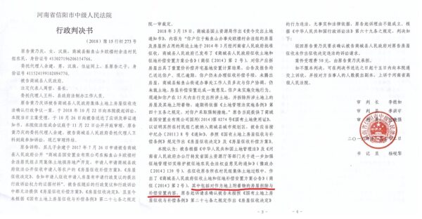 但我家的土地早就纳入了城市规划,这也难不住你的政府和法院。商城县政府在答辩中称:“黄乃庆被征收的土地系集体土地,被征收土地上的房屋按集体土地地上附作物予以补偿”。信阳中级法院在([2018]豫15行初273号)《行政判决书》上就认定:“其中包括对作为地上附作物的房屋拆除与补偿安置内容”