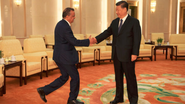 【新!唐!人:北京时间2020年05月19日讯】18日召开的世界卫生大会视讯会议上,习*近*平致词时,称赞WHO秘书长谭德塞为国际防疫做出重大贡献,并宣布中共将提供20亿美元的国际援助。美国总统川普(特朗普)同日则送给谭德塞四个字:中共傀儡。