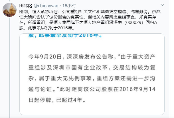 还有网友说,“虽然恒大晚间否认了该份报告的真实性,但相关内容所提重组事宜,却真实存在。”