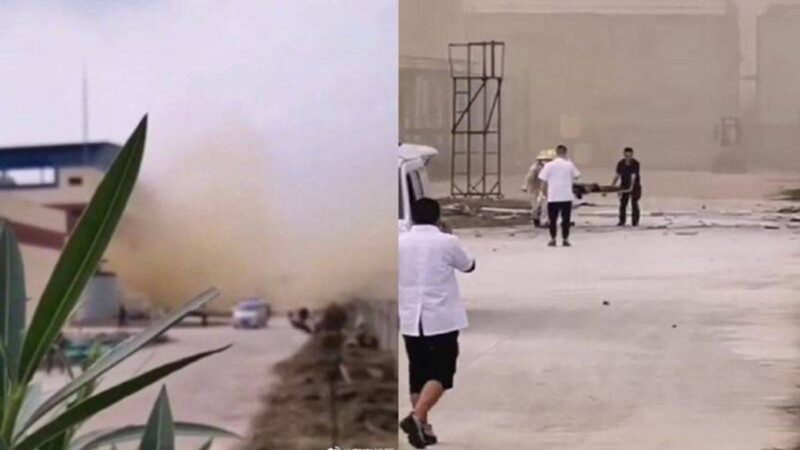 网传现场视频显示,爆炸后,该工厂内部黄烟弥漫,身穿工作服、戴黄色安全帽的工人同救援人员一起将伤亡人员抬出。