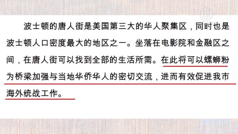 【新!唐!人:北京时间2021年01月09日讯】最近,在中国火爆的地方小吃“螺蛳粉”,成为中共海外统战的新武器。一份内部文件泄露,中共如何通过宣传、输出螺狮粉,来笼络海外人士。