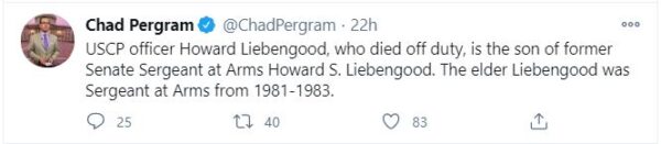 据美国《纽约邮报》报导,利本古德从2005年4月起在参议院负责安保工作,他已故的父亲曾担任参议院警卫官。