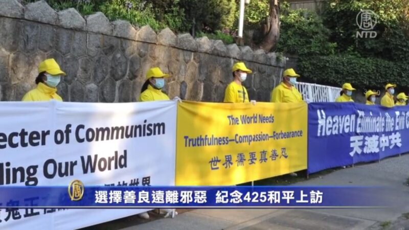在纪念425 法轮功万人和平上访22周年的日子里,温哥华法轮功学员,像往年一样,聚集在中领馆前和平抗议。他们秉持理性和平的精神,坚持告诉世人,选择善良,远离中共邪恶政权。