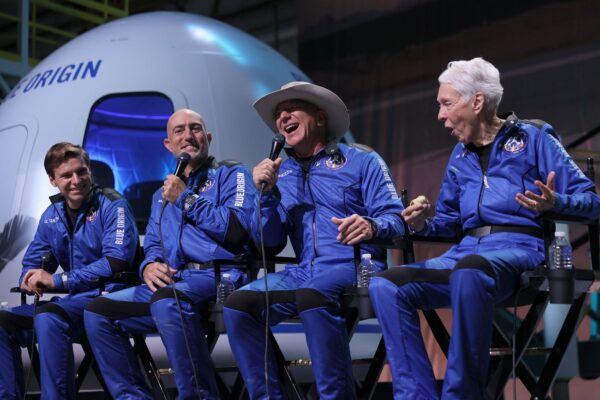 周二一起前往太空的机组人员除了贝佐斯外,还包括他的兄弟马克(Mark)、航天先驱沃利‧芬克(Wally Funk)和荷兰少年奥利弗‧戴曼(Oliver Daeman)。