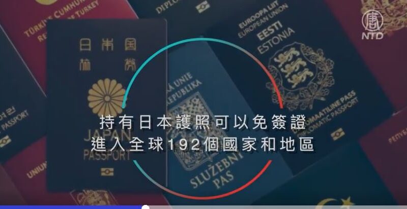 【新!唐!人:北京时间2022年01月12日讯】一项最新的统计显示,2022年全球各国护照指数排名中,日本护照获得192个国家免签入境,和新加坡同列第1,台湾护照排名32,中国则是64名。