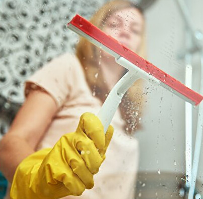 清洁玻璃时,以稀释6~10倍的白醋水喷在玻璃上,先用湿布擦拭,再用刮刀刮除水痕即可。清理大面积的玻璃门窗,可直接用平板拖把代替湿布。不仅清洁速度会加快,也可清到较高的地方。