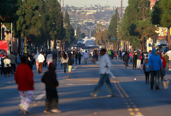 【新!唐!人:北京时间2022年01月31日讯】美国太空梭奋进号(Endeavour)10年前在洛杉矶国际机场(LAX)落地后,为了拖载奋进号到博览会公园(Exposition Park),当时运用地面机具拖载,花了两天时间,一路穿越洛杉矶街道,不过所经之处,一路砍了400多棵树。