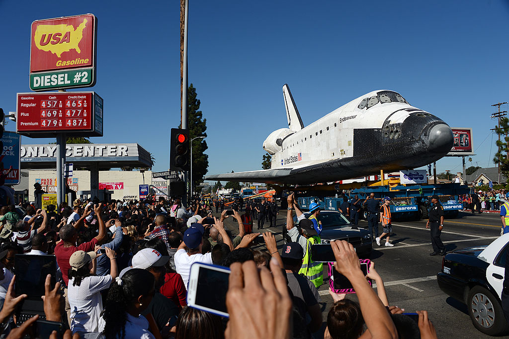 当年奋进号由一架波音747客机搭载,从北加州的爱德华空军基地起飞,抵达洛杉矶之后在机场停留3周,再使用大型机具拖载,以时速3公里的缓慢速度,花两天时间走过高速公路、市区街道,最终抵达加州科学中心。