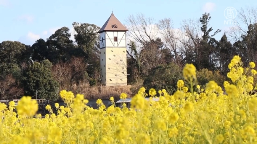 记者:大阪的“收获之丘”五十万株油菜花竞相绽放,带来了春天的气息。