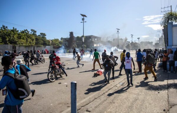 【新!唐!人:北京时间2022年02月24日讯】因薪资跟不上一直高涨的生活费用,海地成衣工人数周前开始示威,在政府2月21日同意调高基本薪资后,因不如工人预期,抗议仍未消散。23日数以千计纺织工人在首都太子港发起暴力示威,目击者说,警方曾向抗议群众开火。目前已知一名记者丧命,两名记者受到枪伤。