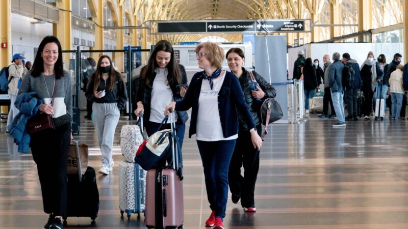 在里根国家机场,乘客们对取消口罩令的反应不一。
