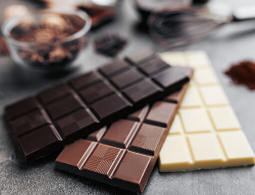 依可可、砂糖、牛奶等组成比例的不同,巧克力主要可分为黑巧克力、牛奶巧克力及白巧克力。