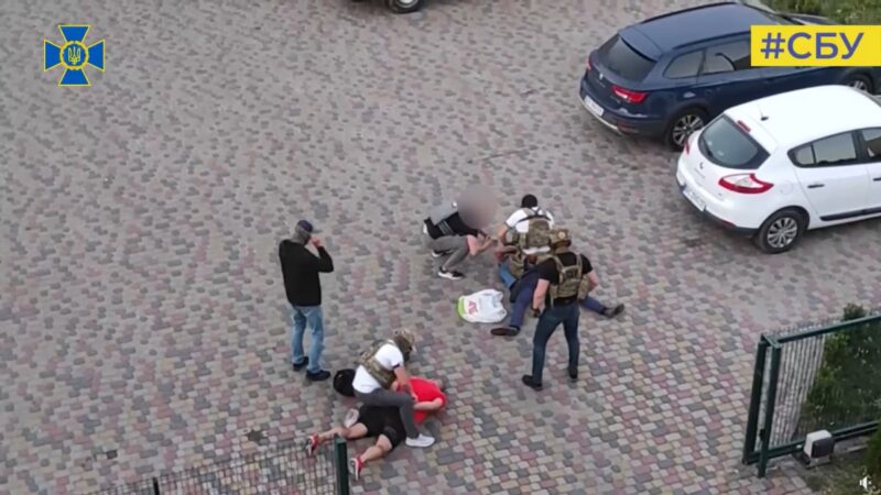 【新!唐!人:北京时间2022年08月09日讯】乌克兰安全局(SBU)8日公布影片,两名身穿便衣的男子正要走近一辆车时,遭多名全副武装的人员压制并上铐。SBU表示,这两名是计划暗杀乌克兰国防部长与情报首长的俄罗斯探员。