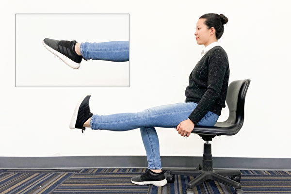方法是坐着伸直膝关节,膝盖与大腿保持水平,然后轮流勾脚背、压脚背。这动作可先训练大腿前侧的股四头肌,纾缓膝盖不适。