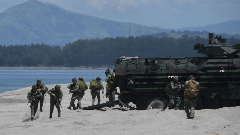 周五(10月7日),美菲两国的年度海军军演继续在菲律宾三描礼士省附近展开。两军在海滩上模拟登陆,同时进行了监视和侦察演习,重点识别化学和生物袭击。