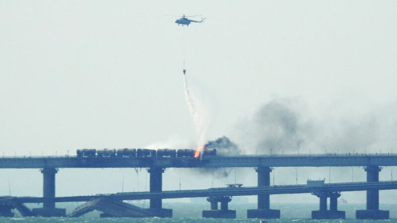 【新!唐!人:北京时间2022年10月13日讯】上周,俄罗斯克里米亚大桥(Kerch Bridge)发生爆炸,克里姆林宫震怒。俄罗斯调查机构认为是卡车炸弹,最近的一份报告提供了不同的看法,称克里米亚大桥的爆炸可能是由水下无人机造成的。