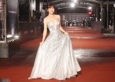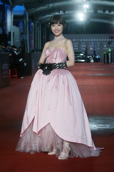 装打扮搭配甜美笑容亮相,成全场焦点。(裴禛/中央社)