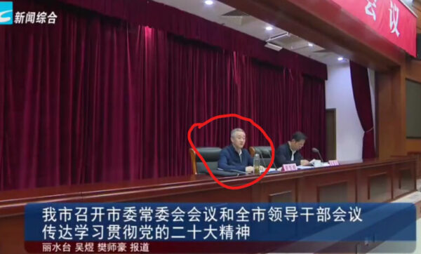 同一天(26日),中共浙江省丽水市官网报导,10月25日上午,该市举行市委常委会会议和全市领导干部会议。市委书记胡海峰主持该会议,传达学习所谓“二十大精神”。
