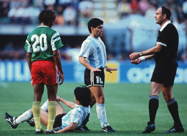 1990年世界杯是“非洲雄狮”表现最惊艳的一届。当年在揭幕战中喀麦隆队VS上届冠军阿根廷队,他们敢打敢拼,以1比0取胜,令人刮目相看;第二场,他们2比1击败欧洲劲旅罗马尼亚队,两轮战罢已提前锁定出线名额,尽管末轮0比4惨败于苏联队,但最终仍以小组第一身份出线。