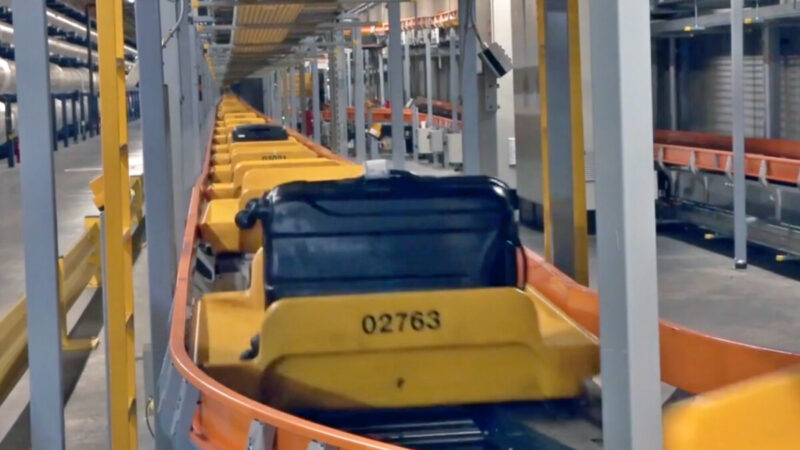 洛杉矶国际机场运营和维护主管 Allan Solorzano:“这个系统有个提前存放系统,它让航空公司能更早开放柜台,行李会放在预先行李存放系统中,并在起飞前装载进飞机。这个系统可以随时追踪行李。这个系统采用无线射频辨识技术,追踪托盘里的所有行李。”