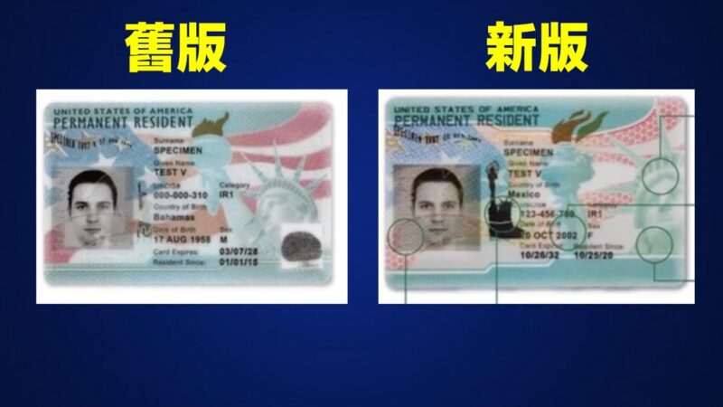 【新!唐!人:北京时间2023年02月01日讯】美国移民局周一宣布,1月30日起发放新版的绿卡和工卡,来提高证件安全,不过没有到期的旧卡仍然有效,来看详情。