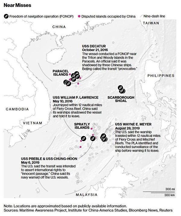 2018年9月30日,美国海军迪凯特号驱逐舰(DDG-73)在南沙群岛南薰礁附近航行,中共一艘驱逐舰在美方驱逐舰左舷附近追上,要求美方驱逐舰向右转向避让中方舰船。两艘军舰最接近处不到41米(135 英尺)。 中共船只通过无线电发出警告,称“如果你不改变航向,你将遭受后果”。