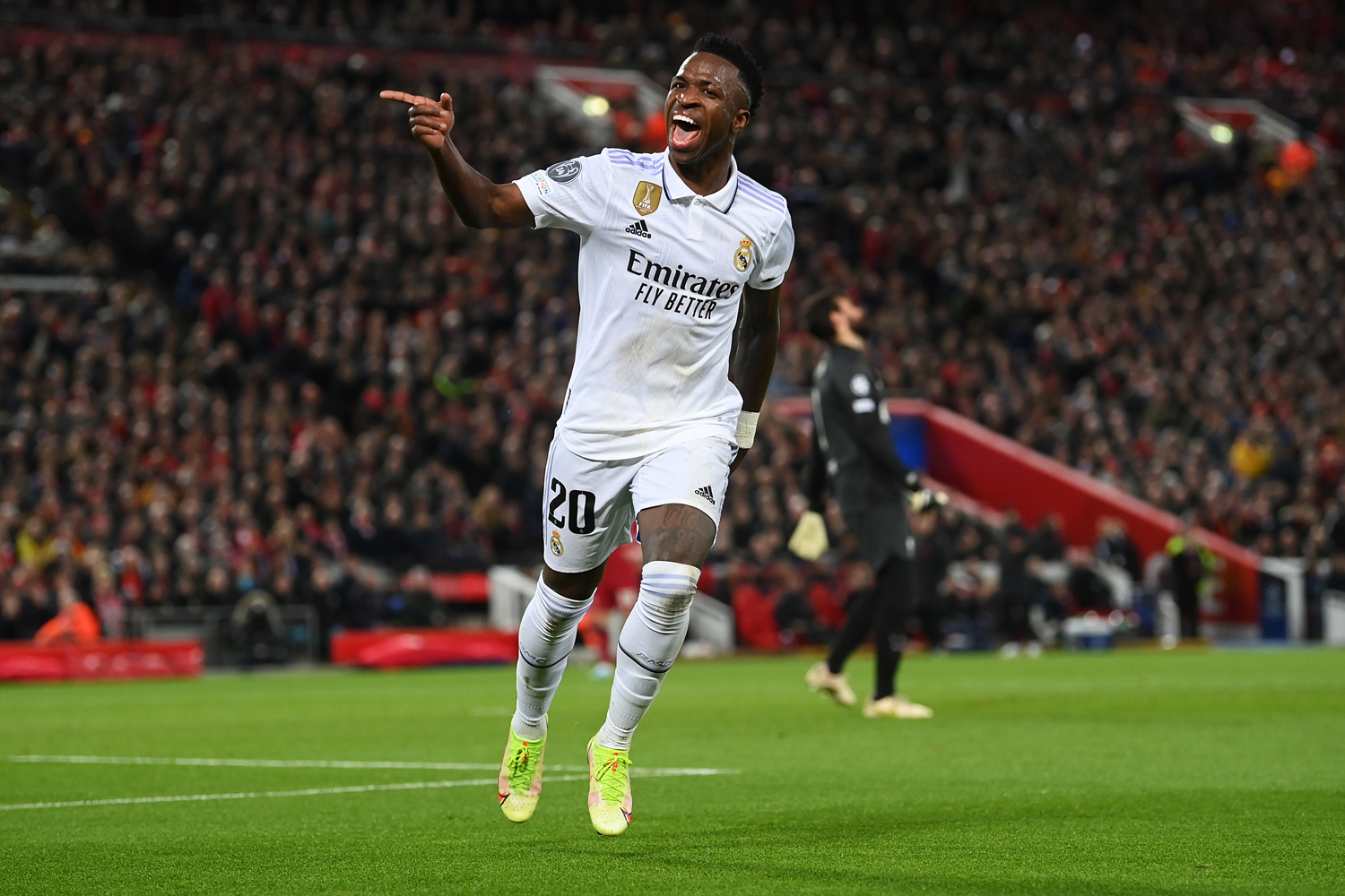 第36分钟,利物浦门将阿利松同样犯下致命错误,在接到后卫回传后,大脚开球直接踢到对方前锋维尼修斯的腿上,弹入网窝。皇马幸运地将比分扳平。