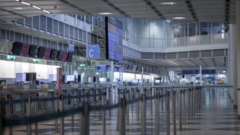 周日,昔日繁忙的慕尼黑机场一片寂静。候机大厅里空无一人。