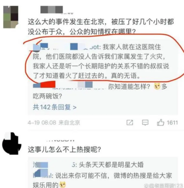 根据公开数据,与北京医院火灾有关的话题网络兴趣指数,在18日晚上9点和10点左右突然神秘下降。对于中共当局封锁事故信息的做法,引发网民的愤怒与谴责。