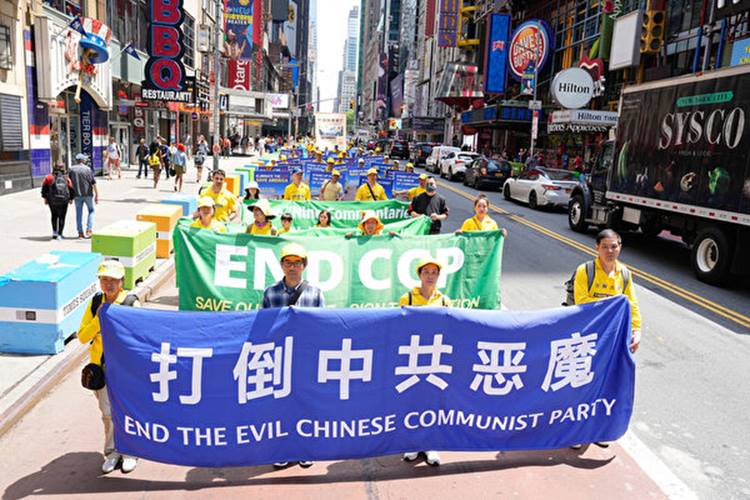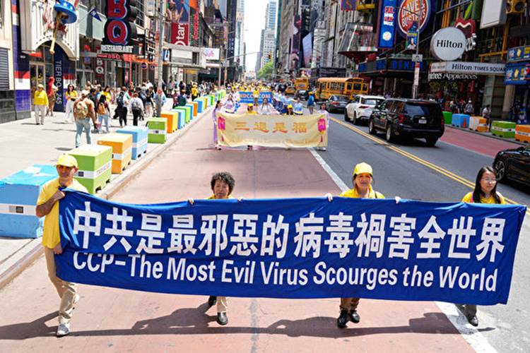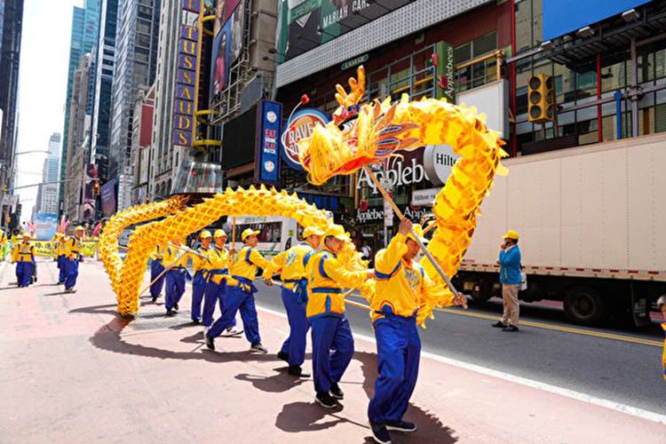 2023年5月12日,大纽约地区部分法轮功学员汇集在纽约曼哈顿举办盛大游行,庆祝法轮大法洪传世界31周年,暨第24届世界法轮大法日。