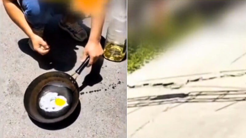 网传视频显示,5月28日,在云南昭通市巧家县,一位村民在太阳下,直接将鸡蛋煎熟。