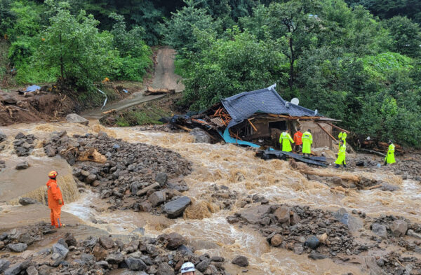 韩国内政部表示,庆尚北道一条河流泛滥时,据报有部分失踪民众遭河水冲走。据了解,这次灾情当中,庆尚北道因山区发生大规模山崩,多间民宅居民因逃难不及遭吞噬。已知该地区有19人死亡、8人失踪。