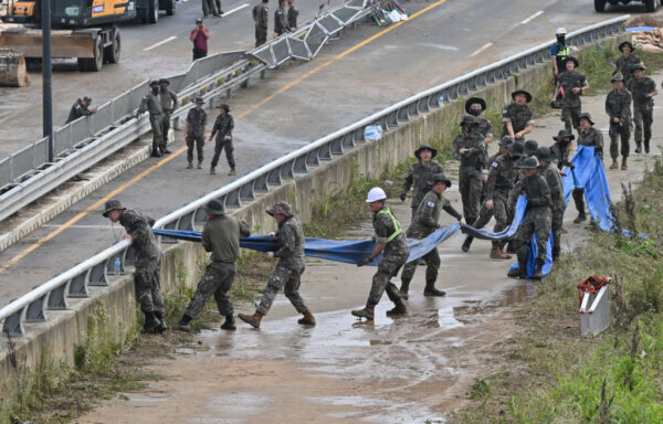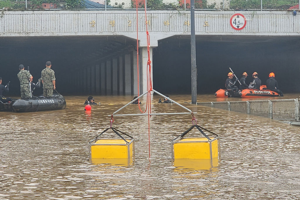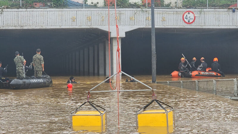中央社综合法新与路透社报导,韩国内政部表示,清州(Cheongju)中部有多部车辆被困在隧道内,救援团队越过厚厚的泥浆,努力疏通地下道寻找更多受困民众。