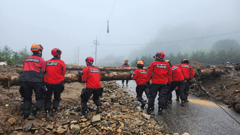 【新!唐!人:北京时间2023年07月19日讯】韩国连日豪雨成灾,引发大范围洪水与山崩,已夺走至少44条人命,迫使数以千计居民撤离家园。今天(7月19日),一名海军陆战队员参与搜救行动时遭急流冲走,下落不明。