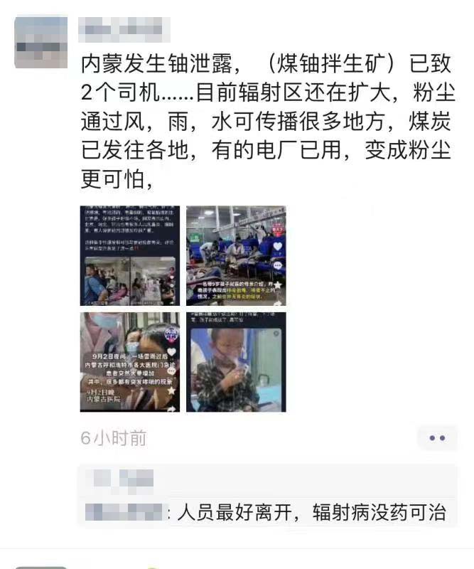 在此之前,就有多名自称知情的人士,包括中共体制内人士,在网上爆料内蒙铀煤矿不当开采导致核污染,但大多没有提到具体是哪家煤矿。