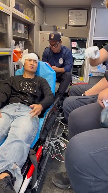 贾俊伟说,她被中共暴徒袭击时,美国警察就在附近,她昏倒在地后,是警察把她拍醒的。她表示,从医院回来后,头还在晕,有作呕想吐的感觉。